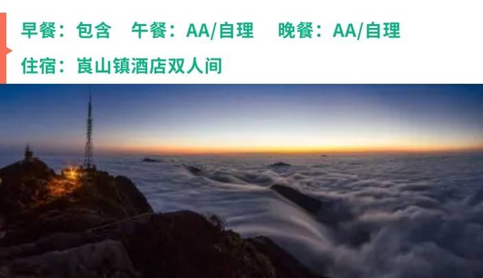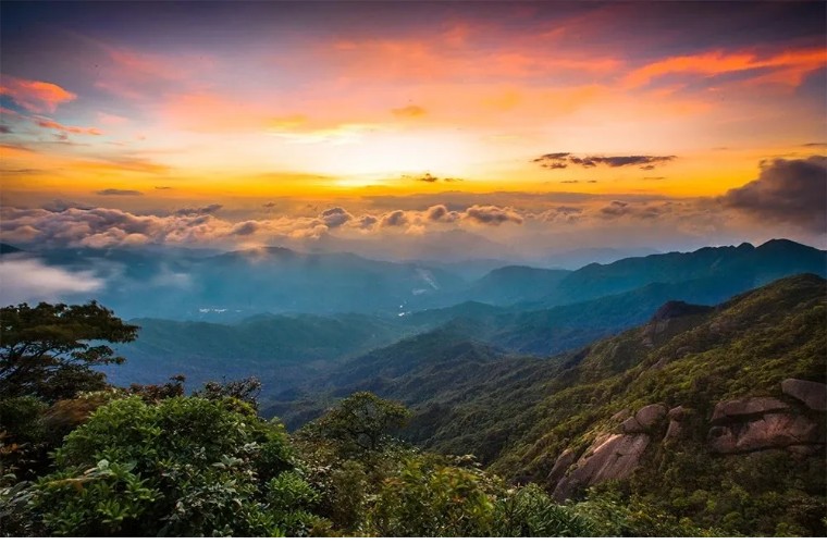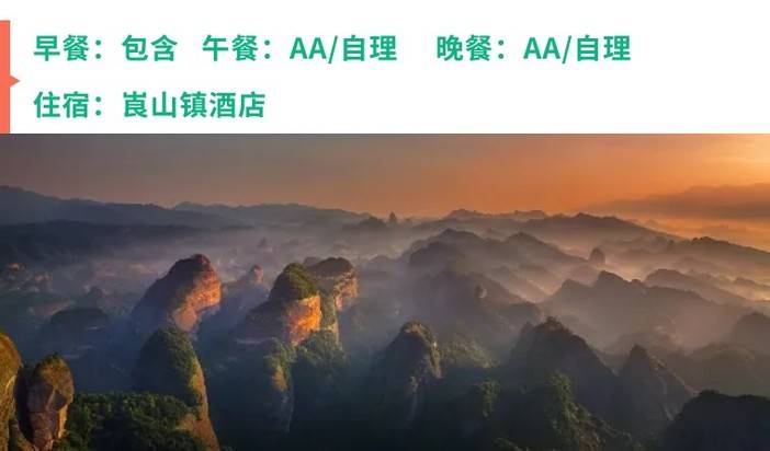 05:30 清晨起床,呼吸大自然最为新鲜的空气,登上【华南之巅】,看日出、观云海、徒步登天梯,赏华南之巅一线天、佛光峰、神仙柱、华南虎等险峻景点。
