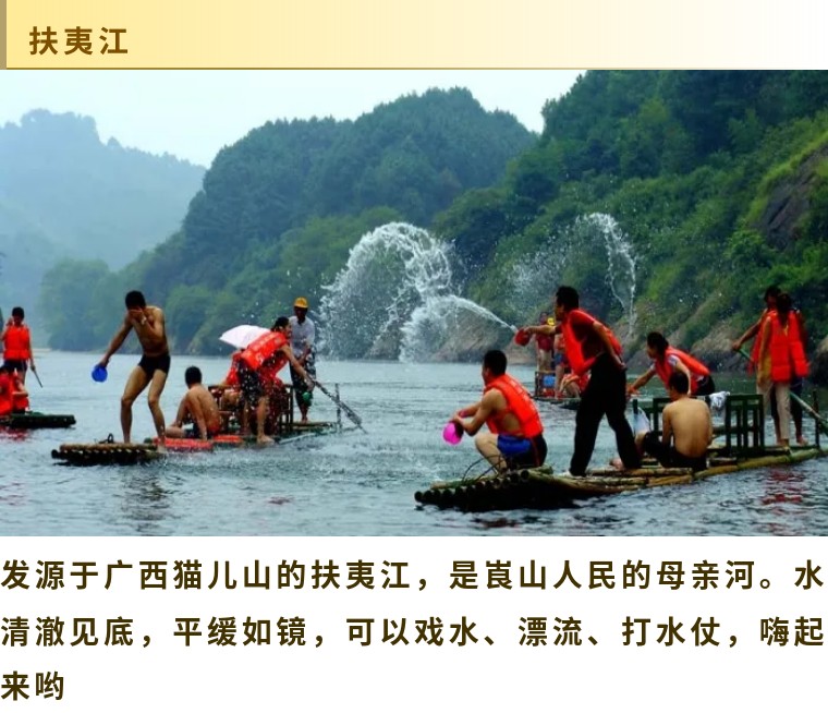 16:00 前往【夫夷江漂流】(漂流时间约1小时),夫夷江江水清澈见底,平缓如镜,水面宽约100米,窄处70多米。(温馨提示:漂流一定要穿救生衣,玩水注意人身及财务安排,电子产品做好防水保护)