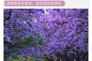 【四花共赏】:在人间四月天,可以同时欣赏到白色流苏花、红紫杜鹃花、火红凤凰花和梦幻蓝花楹四种花卉。