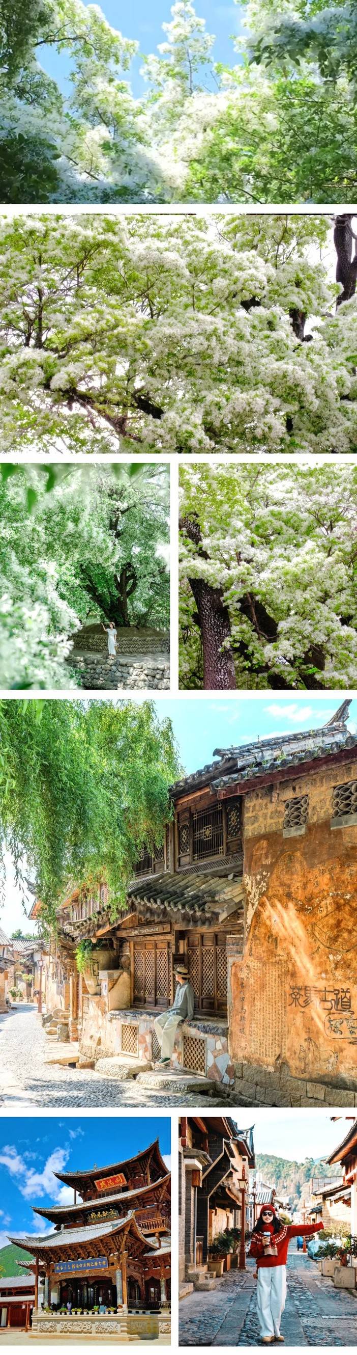 2)流苏花花期不受人为控制,受每年的天气影响,如果因为天气原因,早开或谢的比较早,导致最后个别排期看不到的情况下,则会调整为给大家加上沙溪古镇景点,敬请知悉理解。