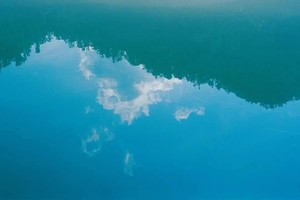 远山如黛,青山碧流,烟波浩渺,碧波如镜