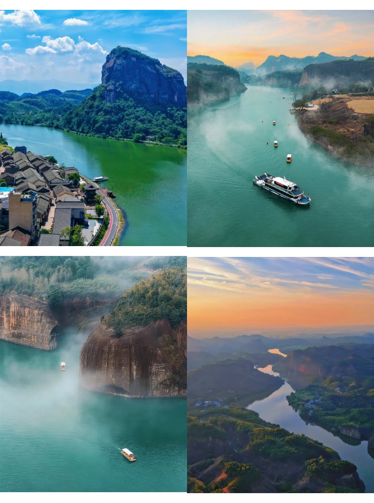 碧绿的翠江蜿蜒其中,山水相依,构成了一幅幅如诗如画的美景 。碧波澜澜飘着仙气的河面、红岩黛峰的丹霞奇景最是大自然的奇作,举步江边栈道,清风拂面,鸟啼虫鸣;乘船环游,看碧水共长天一色!