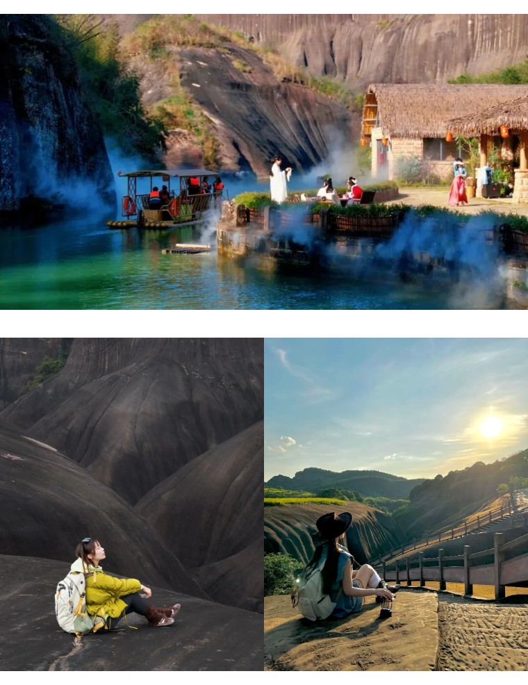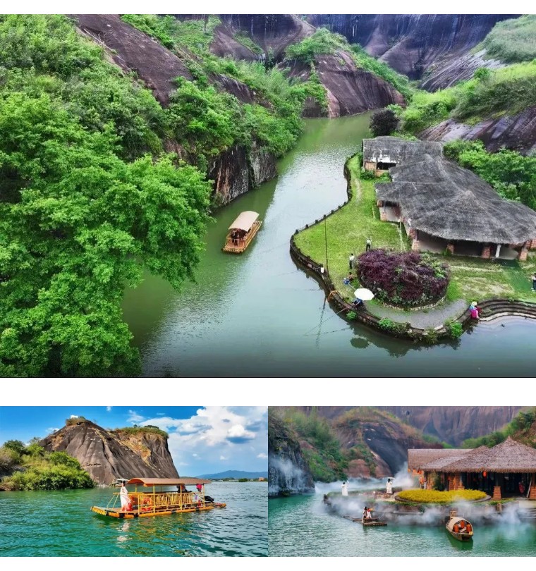 13:30左右抵达湖南郴州【飞天山风景区】,游九龙水寨竹筏游,从大面洲码头出发,行至九龙水寨,水寨中浏览后,看鲤鱼戏水和千年悬棺,如想在九龙水寨停靠片刻,可与竹筏师傅沟通。竹筏游船的路线是围绕着光滑壮丽的岩石山,为游客展现了一幅精致的水上丹霞地貌画卷,乘坐在竹筏上,在碧波荡漾的江面上漫游,仿佛置身仙境,可以尽情享受碧水丹霞之美!