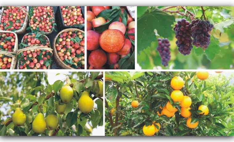 枇杷、杨梅、水蜜桃、香瓜、黄桃,鹰嘴桃、李子、西瓜、葡萄、梨子、清江蜜桔、柑子、冰糖橙、柚子等等