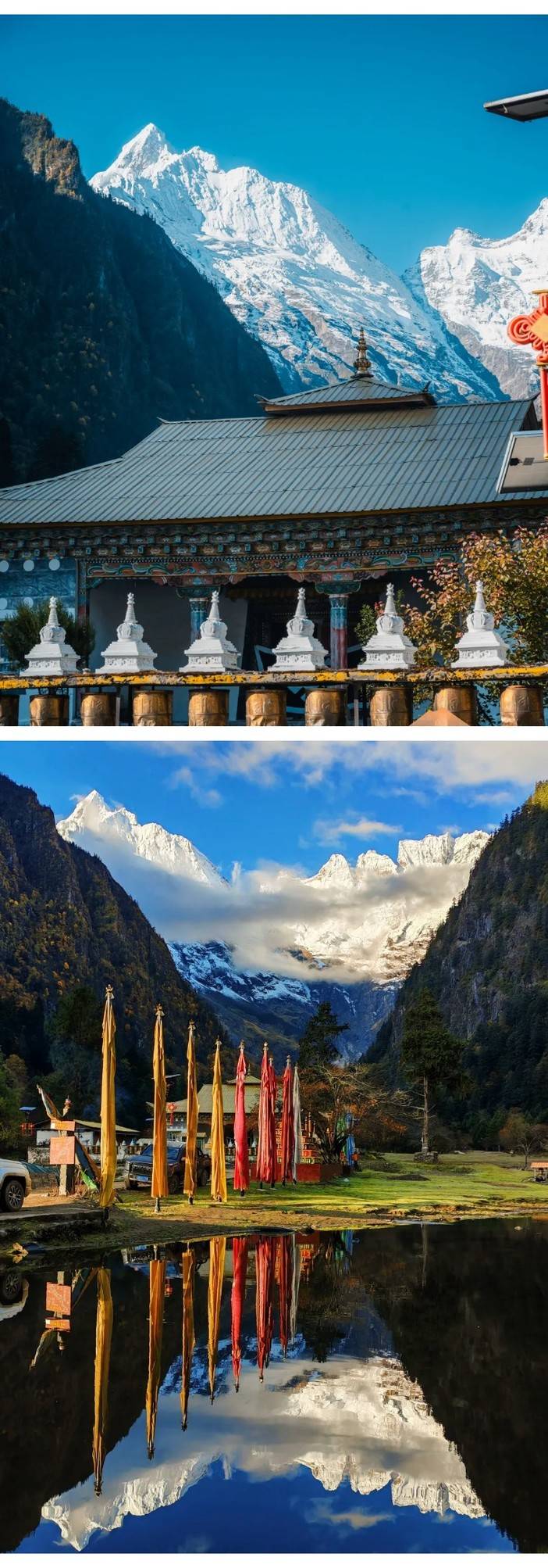 然后继续往前行驶,傍晚来临之际我们将到达酒店,傍晚可到飞来寺观景台观看梅里雪山,近距离感受这座神圣的雪山。天气较好的时候可一睹梅里雪山的绚烂晚霞,当整个霞光铺满雪山的上空,那一刻的震撼是此生都不会再见到的。