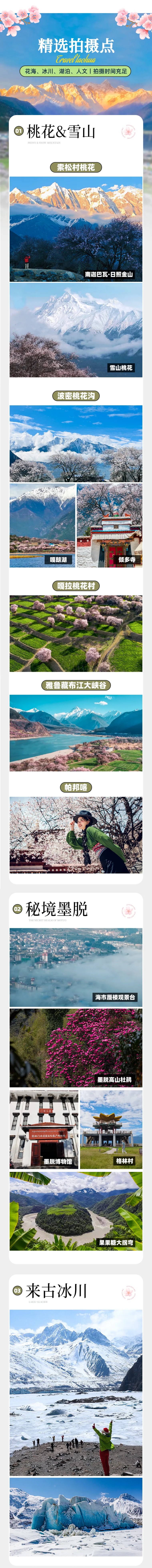 拍摄建议:一定要登上桃花村里的观景台,俯瞰桃花、田野、村庄与远方雪山交织的壮丽画卷。