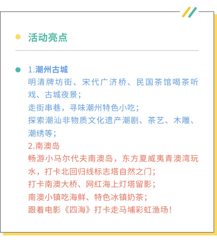 ②住宿:1晚潮州或汕头(2人一间房。单人报名默认安排同性拼房,如需单独住,需补房差)