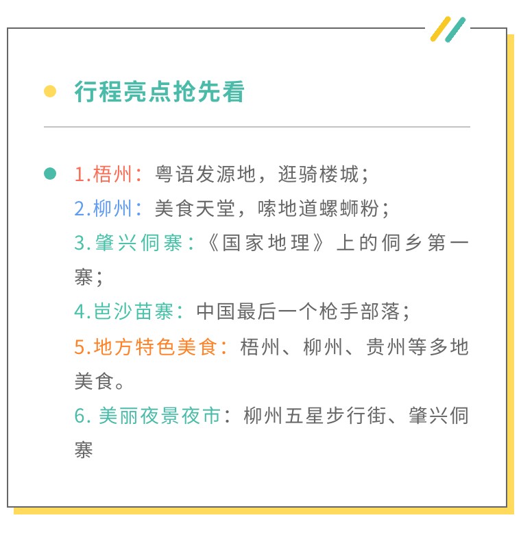 ②住宿:1晚柳州,1晚从江(单人报名默认安排同性拼房,如需单独住,需补房差)