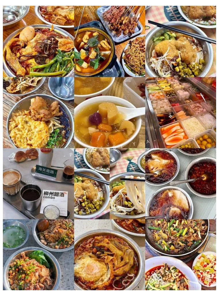 除了螺蛳粉,这里还有汤粉、干捞粉、炒螺蛳粉、猪脚粉等各式各样的米粉以及牛杂、鸭脚煲、卤菜还有豆腐花、炒冰、木薯羹等甜品带着八个胃来都不够