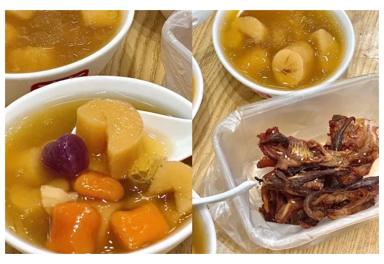 历史悠久的传统药膳龟苓膏。这里也是龟苓膏的发源地,几块钱一碗,可以加各种配料。