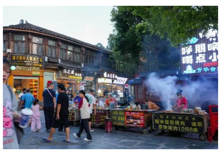肇兴侗寨有很多美食小吃,如酸汤鱼、酸汤牛肉、烤香猪肉串、糯米饭包烤肉、嬢嬢酸泡菜、牛瘪火锅等等,便宜又好吃,尤其是烤香猪肉串是我吃过最好吃的烤猪肉,一定要是五花肉,烤得滋滋冒油,又香又酥吃了还想吃。