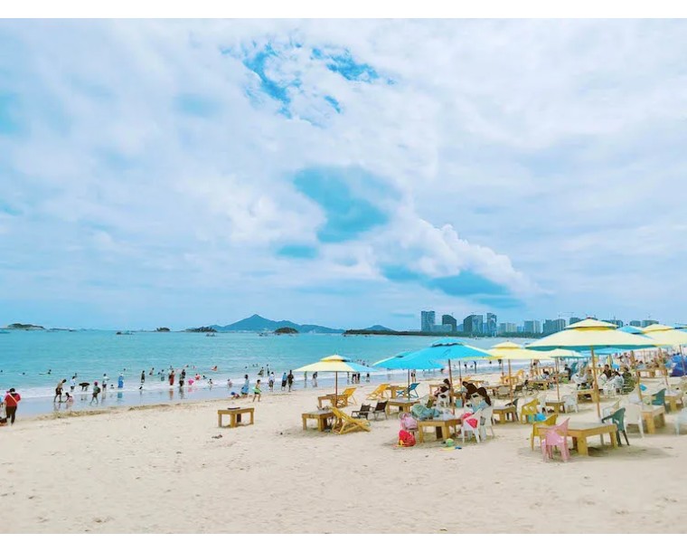 马銮湾,闻名遐迩的海滨浴场,海面宽阔,水质清纯,让人一见到就想扑进它的怀抱。