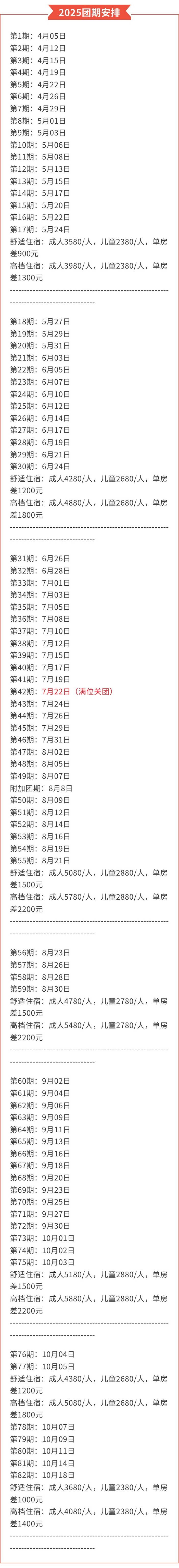 2、在出行时可能会根据实际情况,调整小部分景点游览顺序,确保大家正常游玩,敬请知悉和理解。