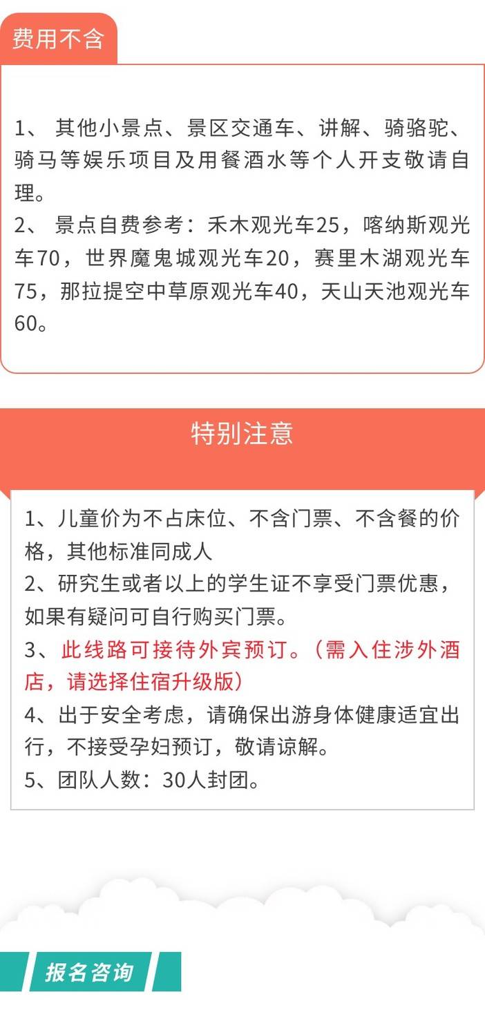 13、儿童报名价格为不占床位、不含门票、不含餐的价格,如果儿童报名要占床位,请补齐单房差费用,如儿童没有身份证,请带好户口簿出行。