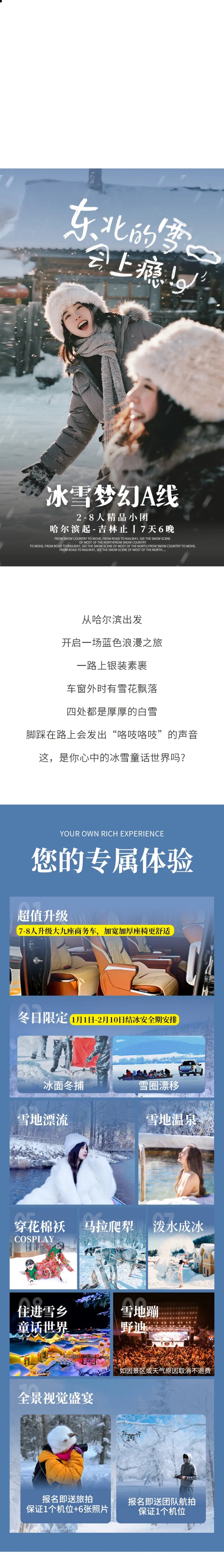 1、赠送体验东北最古老的交通工具马拉爬犁(12月1日-2月21日团期赠送);