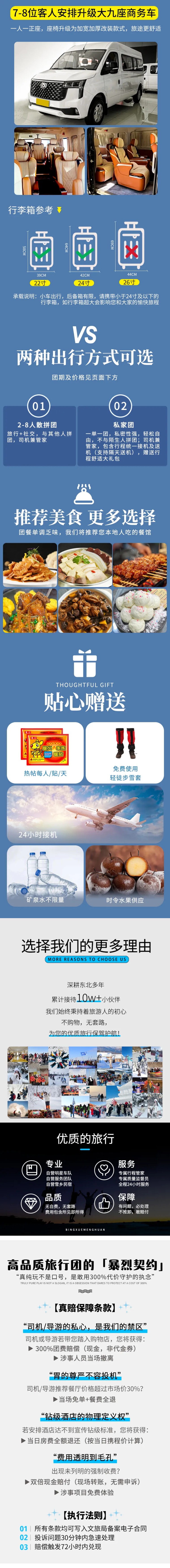 3、用车:2-3客人用5座SUV,4-5客人用7座商务车,6客人用9座商务车,7-8客人用大九座商务车,保证旅途舒适舒心。(小团副驾驶及前后座位置需要轮流乘坐,望悉知)